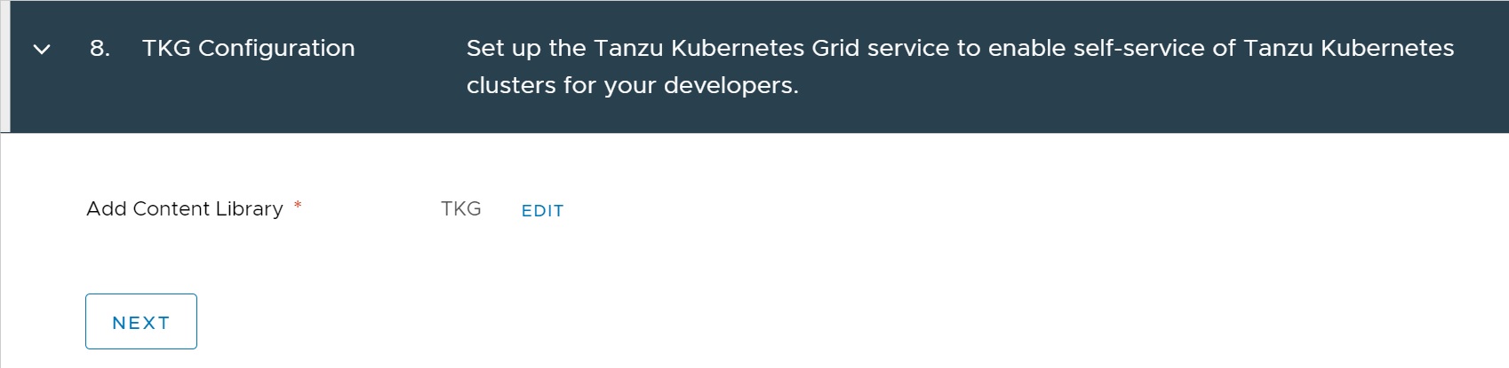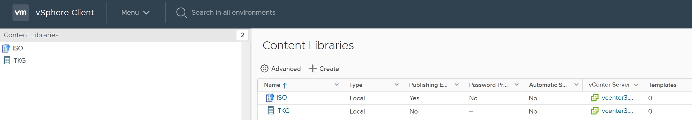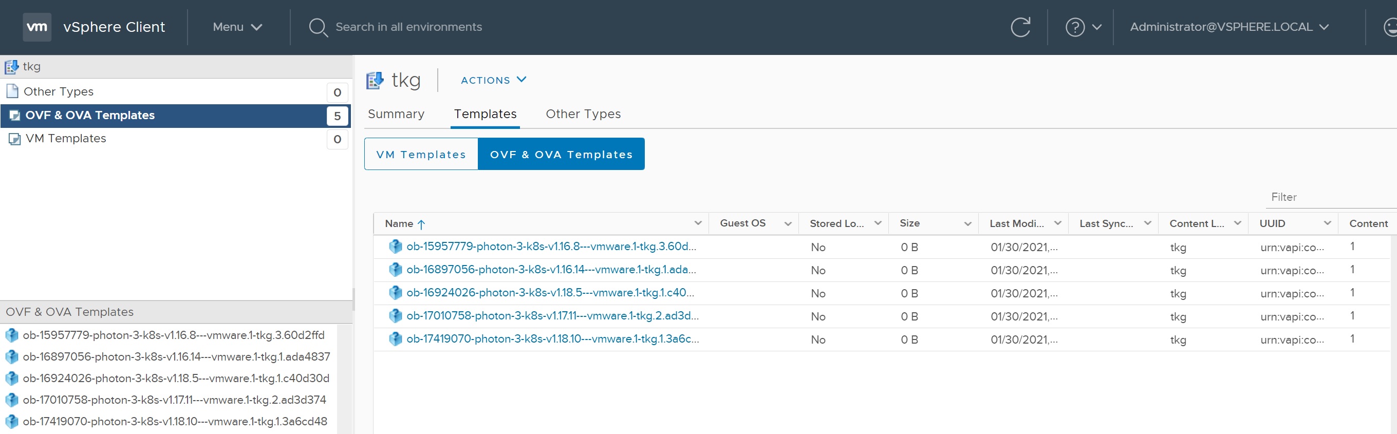 Next we select the tkg content library where we downloaded the OVF/OVA files
