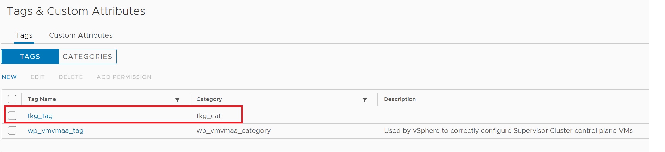 Next we create a tag called tkg_tag and add the tkg_cat category