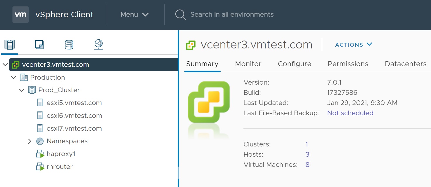 In this section we are going to setup a Kubernetes cluster using the vCenter Workload Manager, however we have to prepare a number of tasks first, I had to setup a RedHat server (rhrouter) to act as a network router (you also can use a manageable switch, virtual router software), we then setup the HAProxy VM (haproxy1) and finally get to setup the Kubernetes cluster. Below is what we will finish up with, I am using a 3 node basic cluster with HA and DRS enabled.