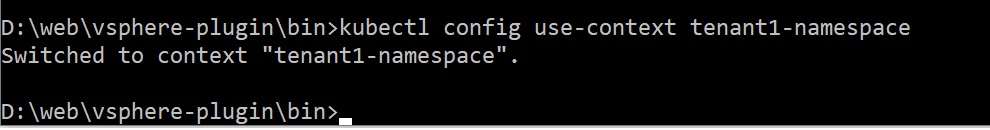 Now we switch to using the tenant1-namespace namespace by using the kubectl config command as per below