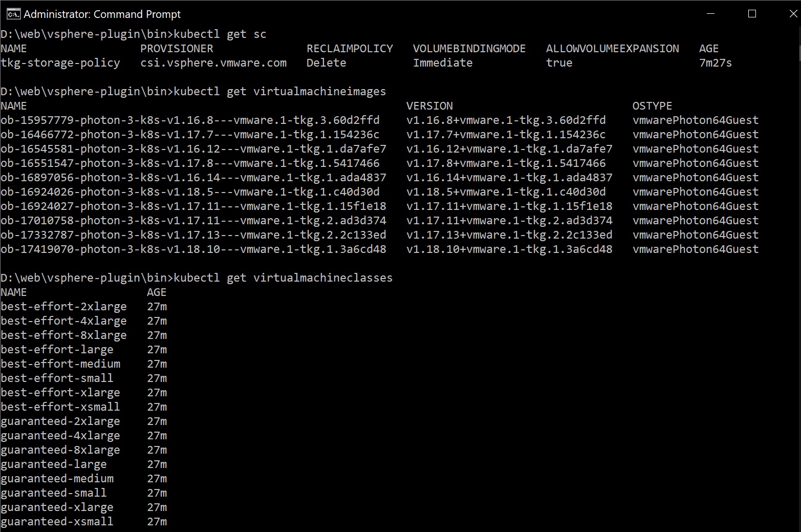 Now we can use the kubectl command to get the storage class details, virtual machine images, virtual machine classes, etc.